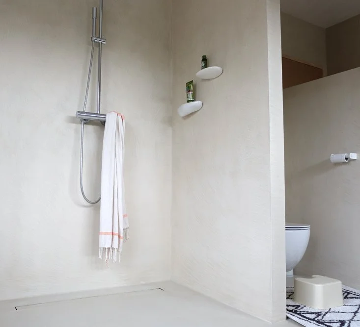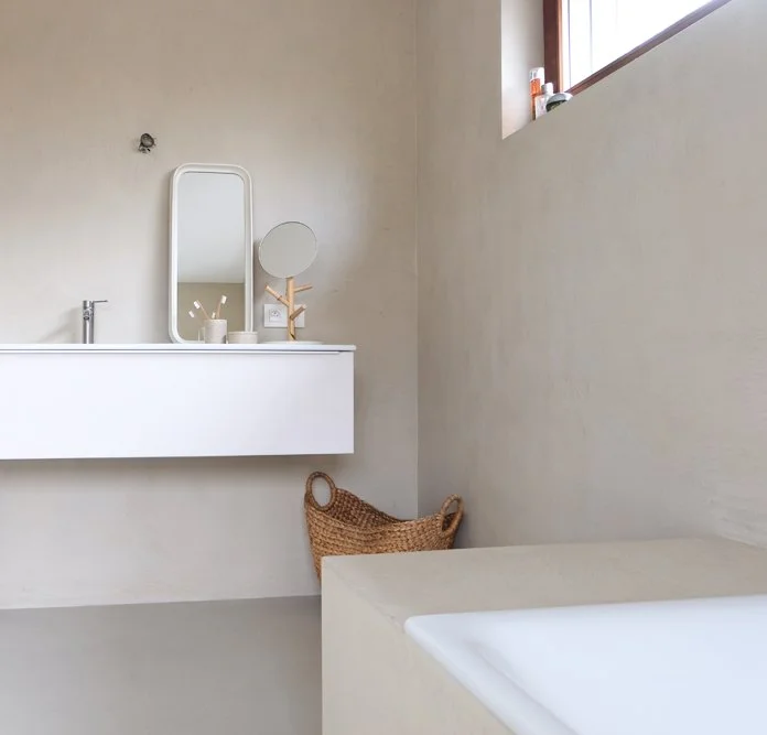 Project LKW 118 Ibiza vibes hier in deze badkamer. Een oase van rust in deze badkamer bezet met microcement in het kleur ‘Tortora’.