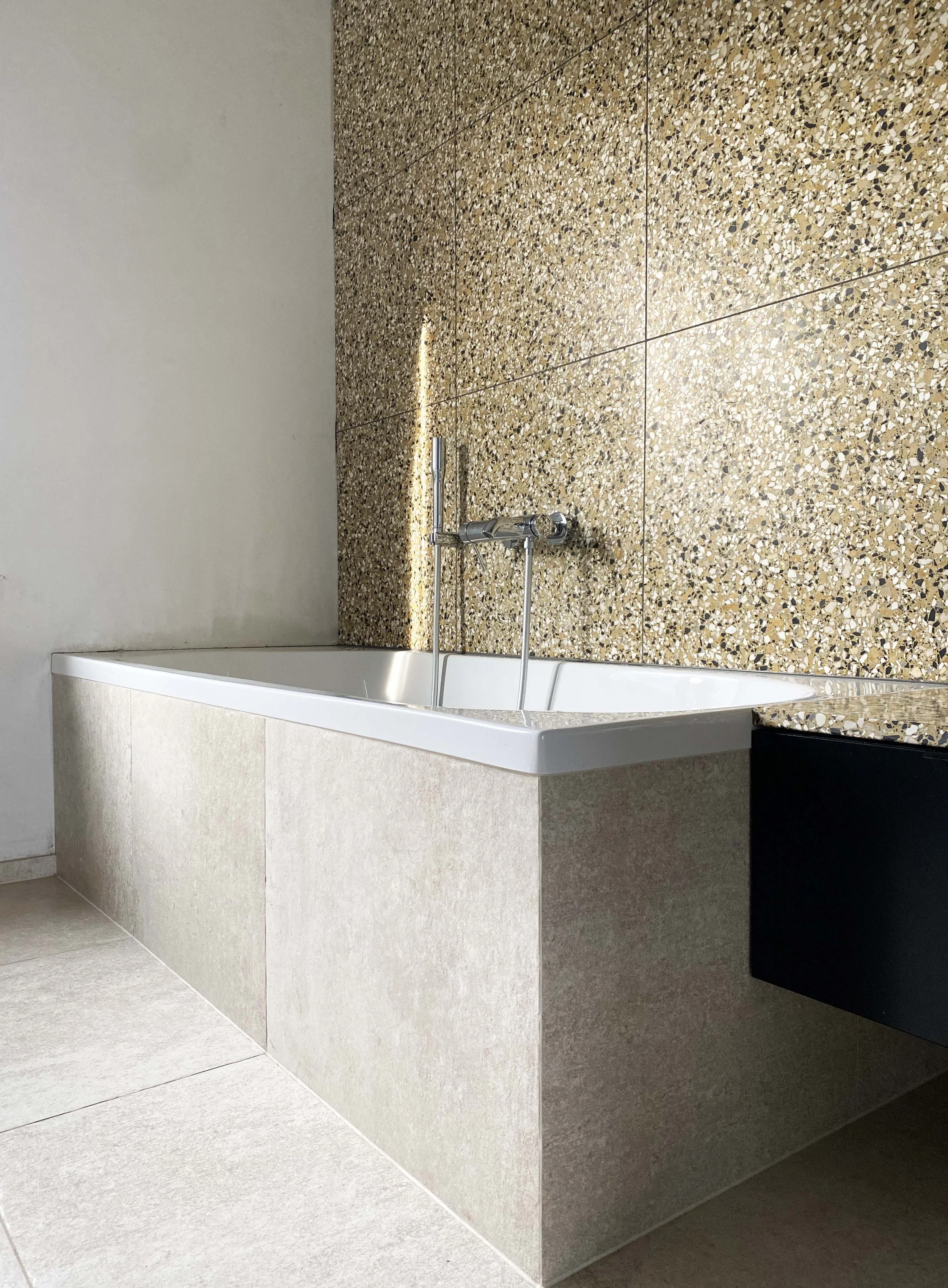Geheelrenovatie benedenverdieping, badkamer en heraanleg oprit met bijhorende terrassen en paden in de tuin.