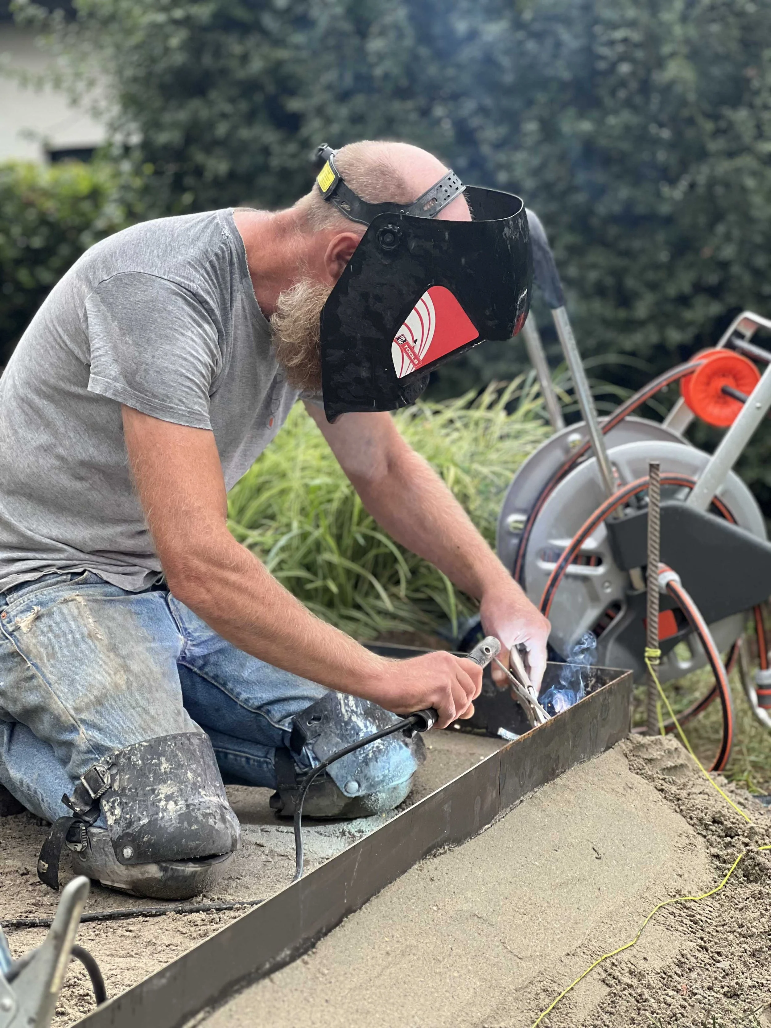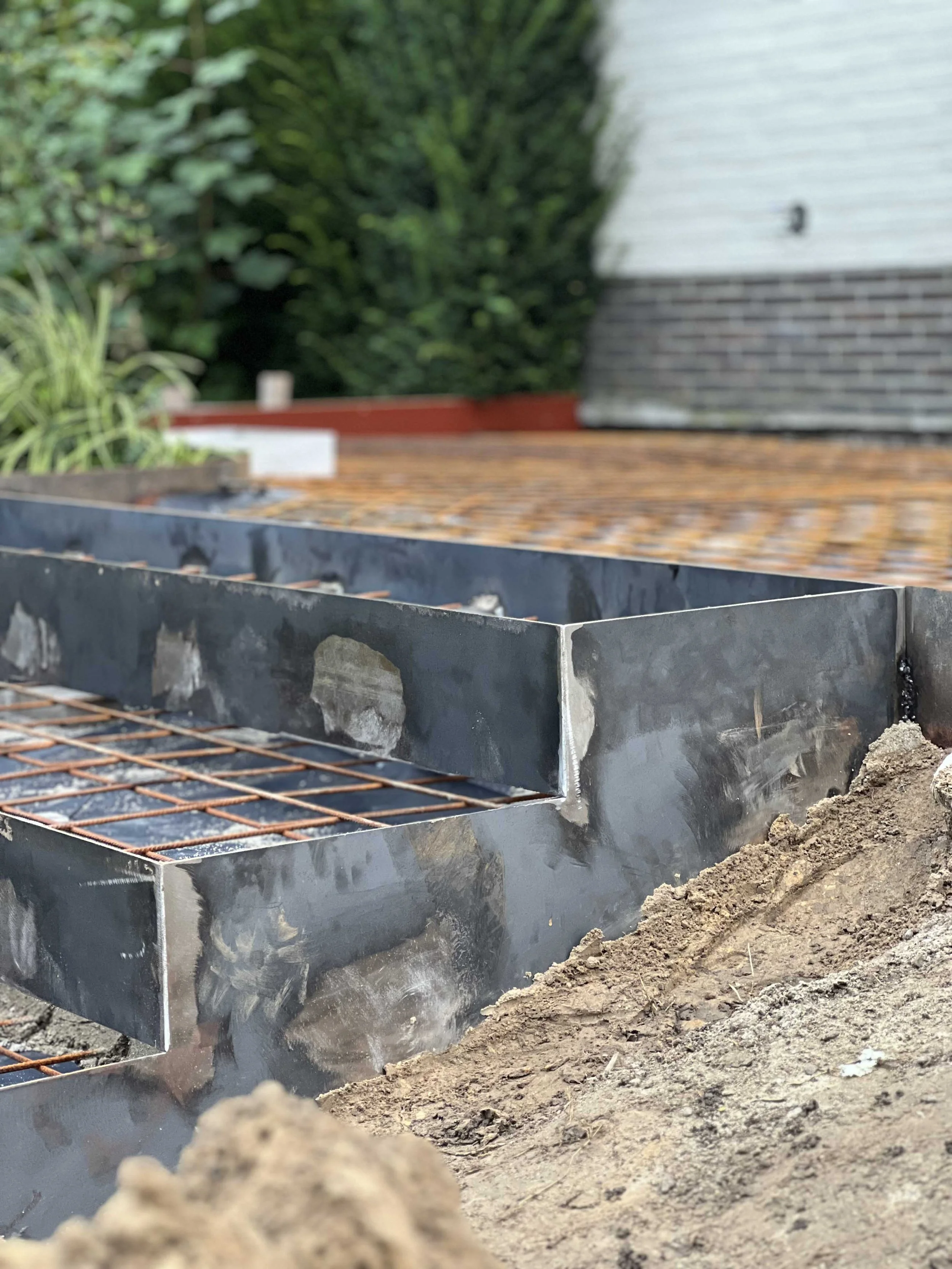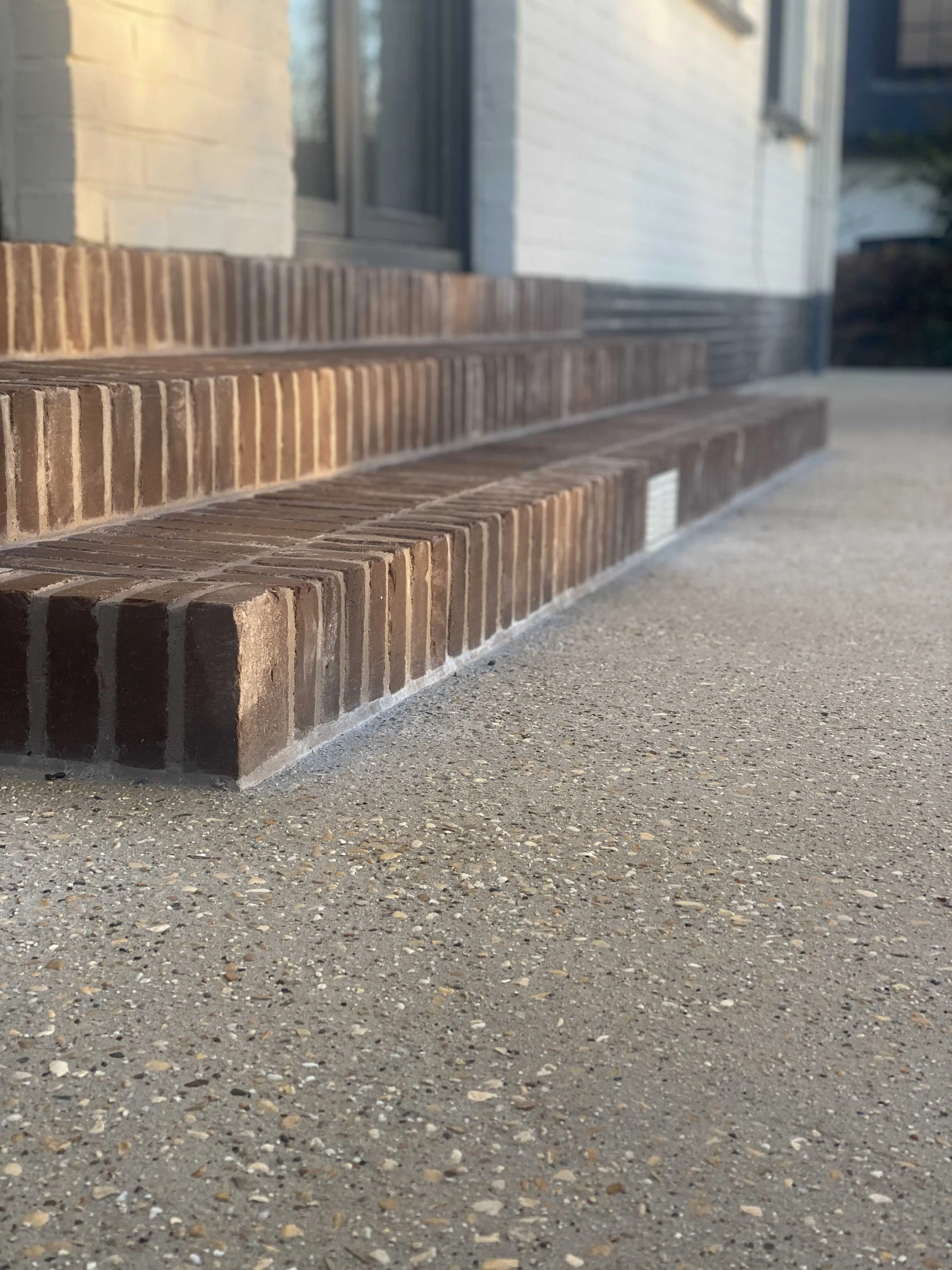Project CON 9 Verhoogd terras in uitgewassen beton. Dit terras past volledig bij de sfeer van het huis.