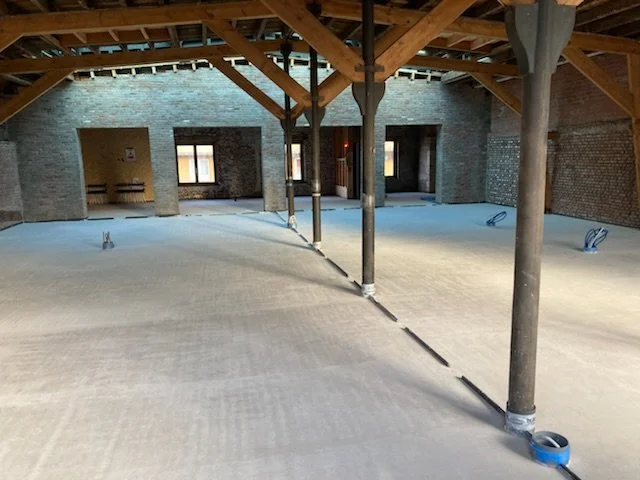Na het plaatsen van de vloerverwarming werd een vloeibare anhydriet chape gegoten.